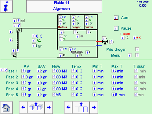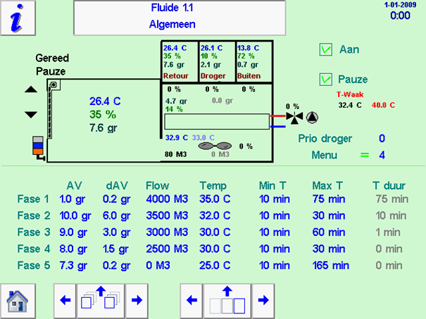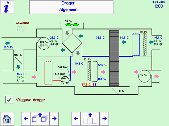 Aan de rechterzijde van dit overzicht worden de gemeten waardes van de ingaande proceslucht van de luchtdroger weergegeven. |
