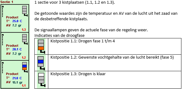 = In pauze met kist aanwezig = Herstart fase 5 = Kist aanwezig maar niet gestart = Handmatig gestopt tijdens fase 1 t/m 5 |
