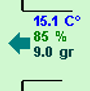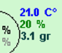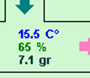 Informatie over de lucht uit het zaad; 21°C met een RV van 97% en 15,1 gram vocht.