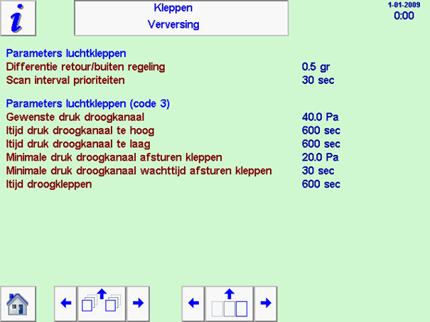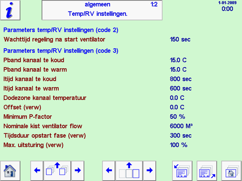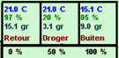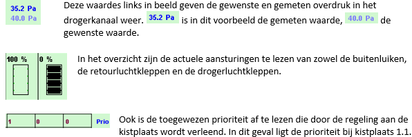 Links onder worden de gemeten waardes van de ingaande regeneratielucht weergegeven. |