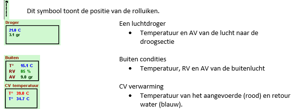 Deze waardes geven de gemeten waardes van de uitgaande proceslucht van de luchtdroger weer. |