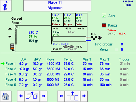 - Bij de overgang wordt de luchthoeveelheid en de gewenste T° geleidelijk verlaagd naar de waarde bij de opvolgende fase.