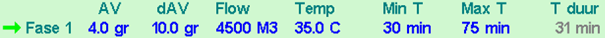 - deze waarde zal in de 1e fase niet worden bereikt, dus de overgang naar de 2e fase zal na 75 minuten plaats vinden.